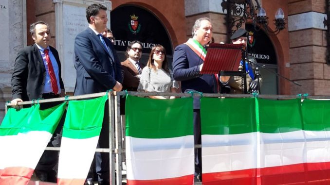FOLIGNO – “Ricordare il 25 aprile non è un momento rituale ma questa giornata ha segnato la rinascita del nostro Paese: mantenere viva la memoria del passato è importante per costruire un Paese fondato su valori di pace, tolleranza e solidarietà”. Lo ha detto il sindaco di Foligno, Nando Mismetti, intervenendo alla cerimonia, in piazza della Repubblica, per celebrare il 25 aprile.