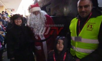La locomotiva a vapore 740 ha fatto il suo ingresso in stazione davanti agli occhi sorridenti di grandi e piccini. Un sorriso che nei più piccoli si è fatto ancora più grande, quando a scendere dal treno è stato Babbo Natale, vestito di tutto punto con il suo vestito rosso. Indescrivibile la loro gioia, ma ancora più emozionante l’entusiasmo con cui tendevano le loro mani per porgere a Babbo Natale i doni portati per i bambini meno fortunati.