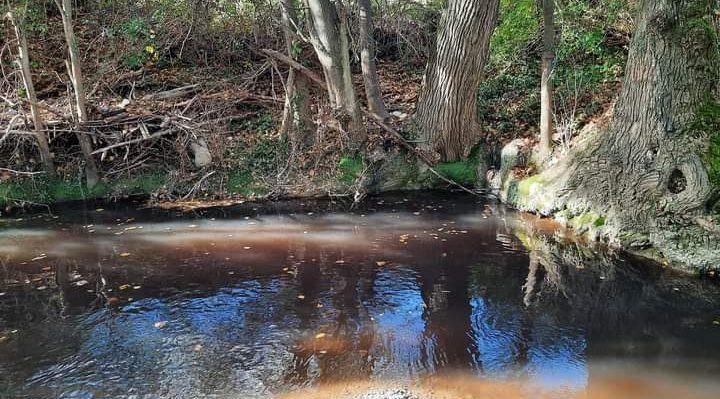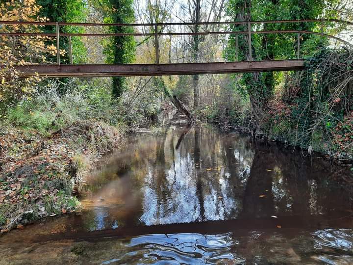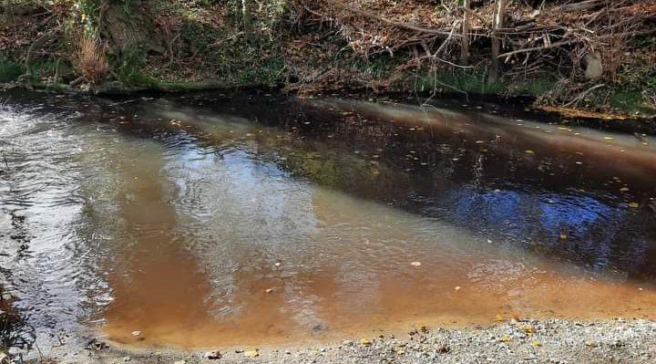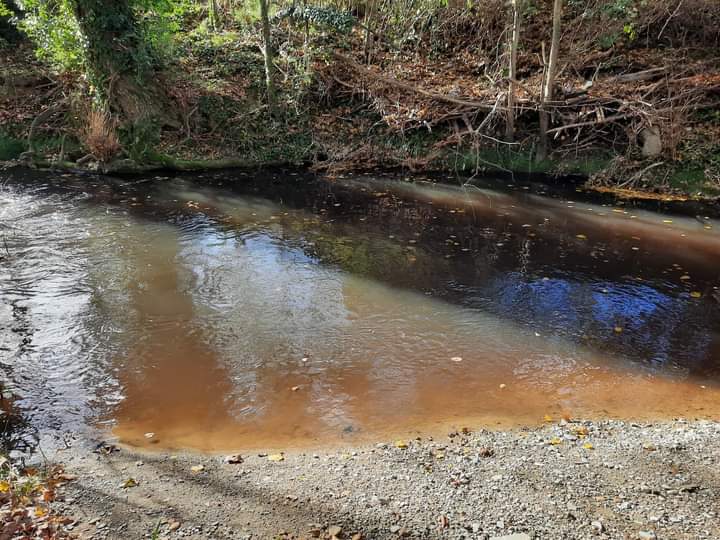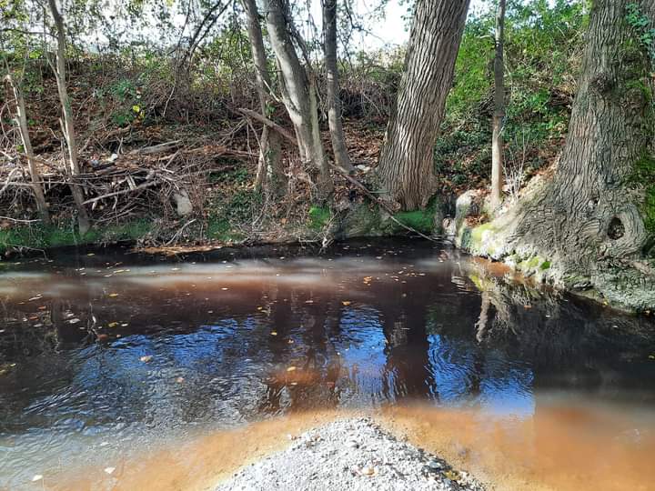 Un fiume che solca le frazioni di Torre del Colle e arriva nella frazione di Cantalupo nel Comune di Bevagna, con l’acqua colorata di marrone.