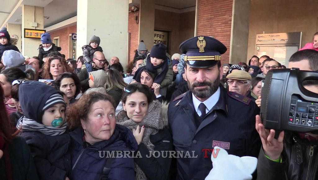 Foligno, Babbo Natale riceve i regali per bambini aree sisma FOLIGNO – Babbo Natale questa volta non ha portato i regali ai bambini, ma li ha ricevuti da loro. Pacchetti che poi consegnerà ai bambini di Norcia, Cascia e Preci, aree colpite dal terremoto. E’ l’evento di solidarietà che si è svolta oggi pomeriggio alla stazione di Foligno per iniziativa di polizia ferroviaria, Caritas, Rfi e Trenitalia. Babbo Natale è arrivato su una locomotiva a vapore del 1922 messa a disposizione dalle Ferrovie. E’ stato accolto da circa 200 tra bambini e adulti al primo binario della stazione, dopo è entrato nei locali dello scalo folignate dove è stato allestito un presepe vivente con un coro, musica ed esposizione di plastici di treni d’epoca. Il direttore della Caritas locale, Mauro Masciotti, e il comandante della polfer folignate Alessandro D’Antoni hanno ringraziato i piccoli per la loro generosità.
