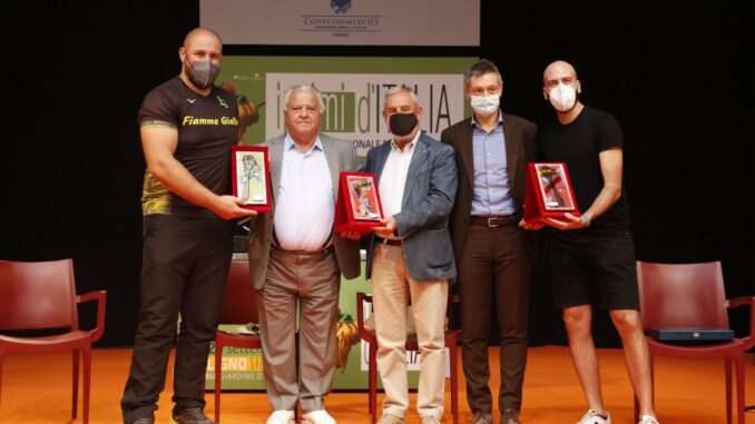 Giornata olimpica ai Primi d’Italia. Il presidente di Epta Confcommercio, Aldo Amoni e l’assessore allo Sport del Comune di Foligno, Decio Barili, hanno premiato gli olimpionici umbri Andrea Santarelli, Giuseppe Faloci e il presidente del Coni Umbria, Domenico Ignozza per il loro impegno nello sport a tutti i livelli. A Palazzo Trinci, sul palco dei Primi, i due atleti azzurri hanno raccontato la loro partecipazione alle Olimpiadi di Tokyo che si sono svolte questa estate e hanno lanciato la sfida verso Parigi 2024.