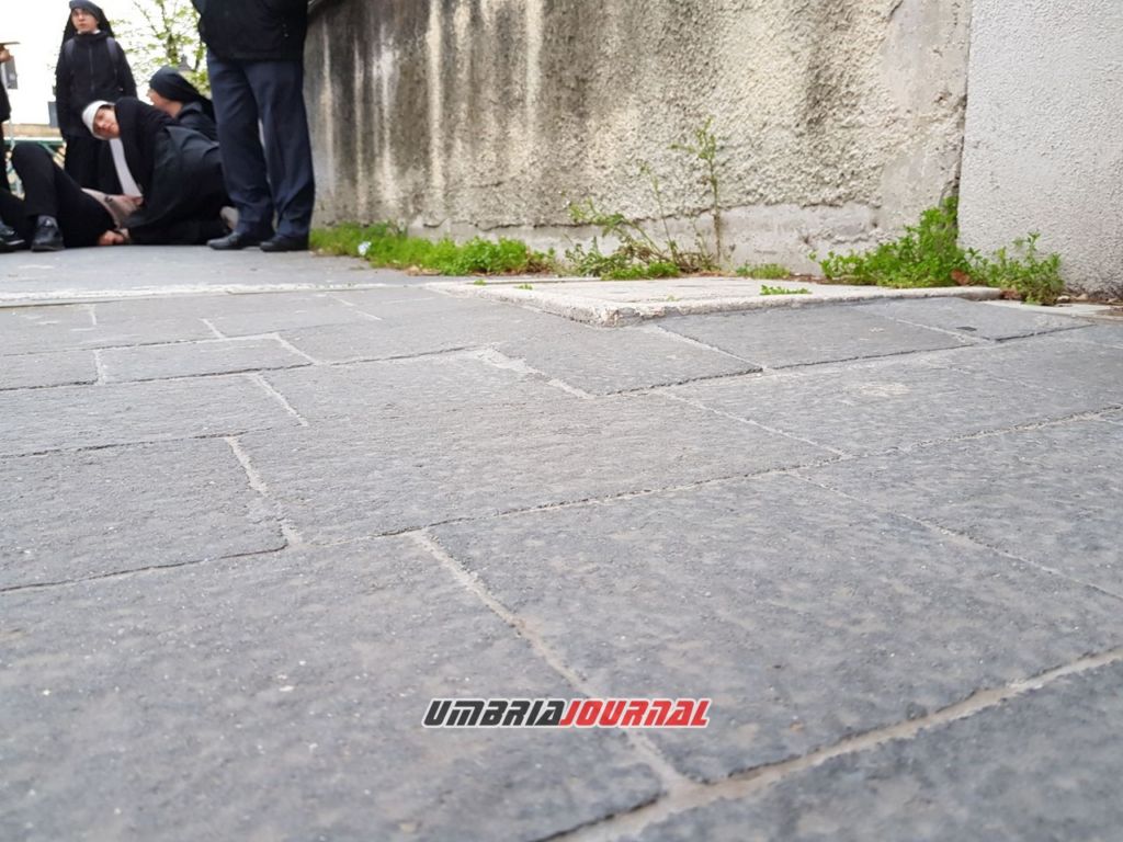 Una volta arrivata al pronto soccorso non è stato facile farsi medicare: «Siamo arrivati alle 20 di sabato e usciti prima della mezzanotte. Abbiamo atteso due ore prima che i medici mi visitassero – ha detto la donna – “il mio caso non era urgente”, intanto impazzivo dal dolore. Fortuna che i miei amici non mi hanno abbandonato da sola in ospedale. Suor Debora e Valentina Conti, sono rimaste con me fino alla fine e mi hanno riaccompagnato al Monastero delle Benedettine di Bastia, dove sono stata ospite in questi due giorni di vacanze umbre. Anche gli altri amici e le consorelle mi sono stati vicino in questa terribile sventura. Doveva essere una pausa e invece per colpa di quel maledetto tombino mi è finita male».