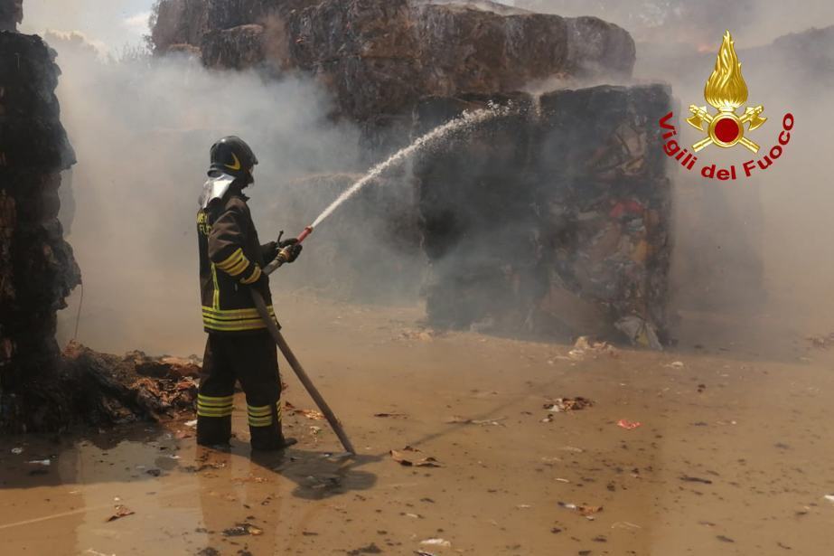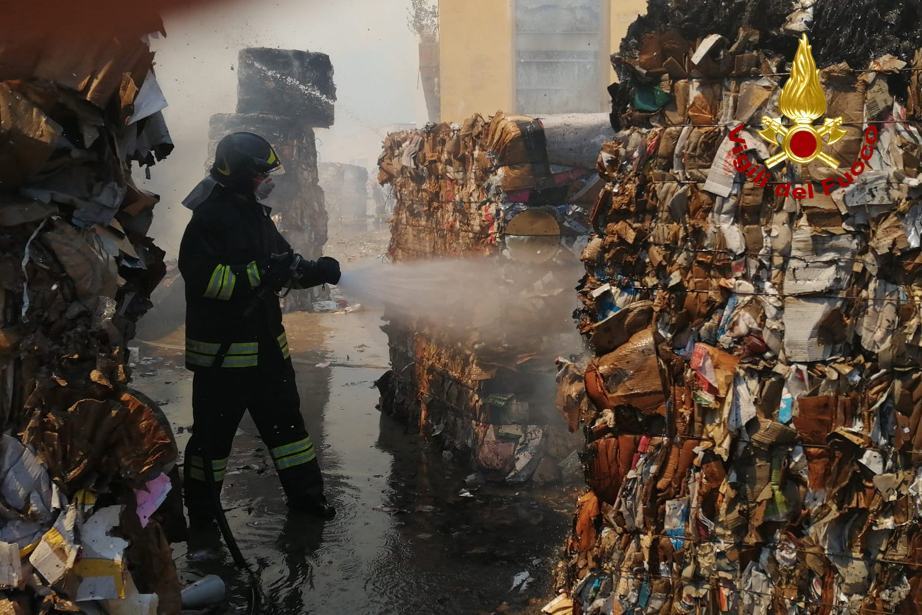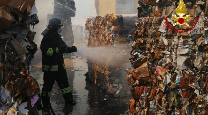 Incendio divampato alla cartiera di Trevi, a fuoco la carta da macero