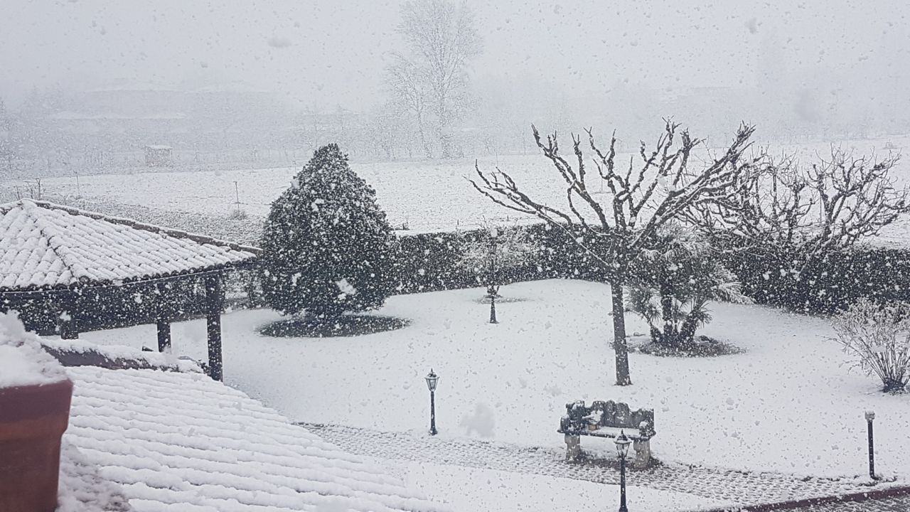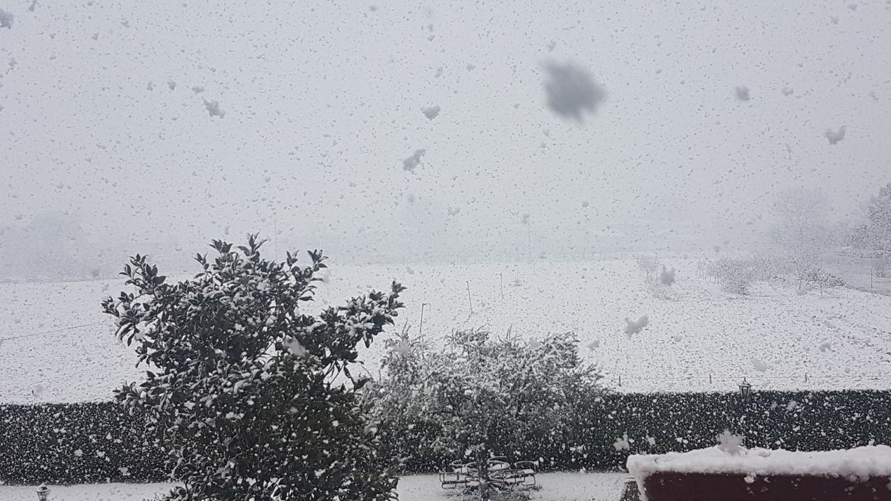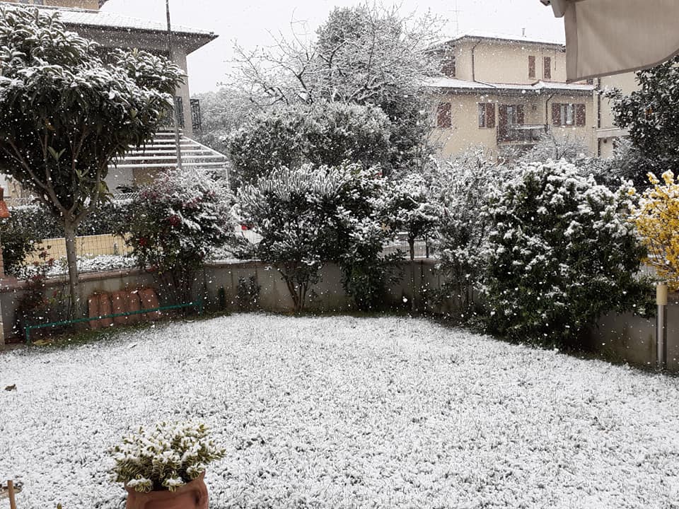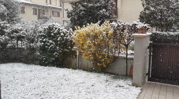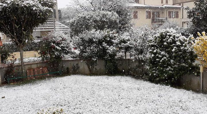 Maltempo, la breve nevicata di Foligno che imbianca tetti e giardini