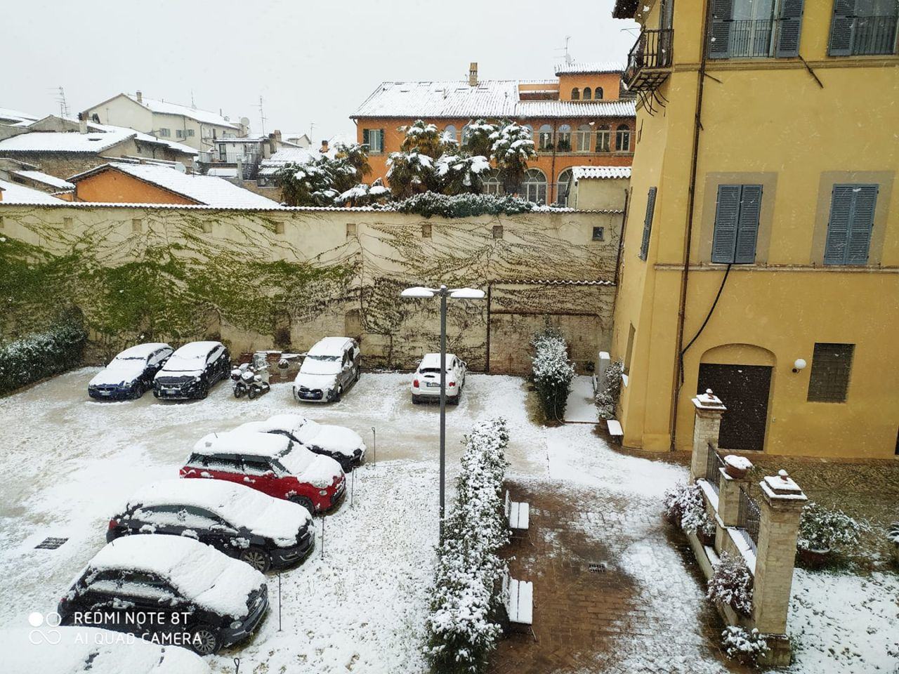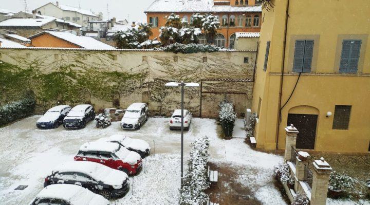 La neve è arrivata anche a Foligno, dopo le precipitazioni di questa mattina a Spoleto, Spello, Assisi, Santa Maria degli Angeli ed altre città nevicate a quote molto basse, anche a Perugia. Neve anche a Bastia Umbra. Ma è durata poco, il sole è spuntato poco dopo.