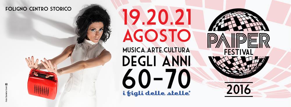 Paiper Festival a Foligno musica degli anni 60 e 70, Figli delle stelle Dal 19 al 21 agosto nel centro storico di Foligno risuoneranno musiche e canzoni degli anni 60 e 70 con il Paiper Festival. La manifestazione è promossa dall’associazione Paiper Festival con la collaborazione di Camera di Commercio di Perugia, Confcommercio, Comune di Foligno, DJAcademy e Carnevale di Sant’Eraclio. Nel centro storico folignate (sono tre i luoghi prescelti: Piazza del Grano, Piazza Matteotti e Largo Carducci) artisti e dj si alterneranno proponendo musica di quegli anni.