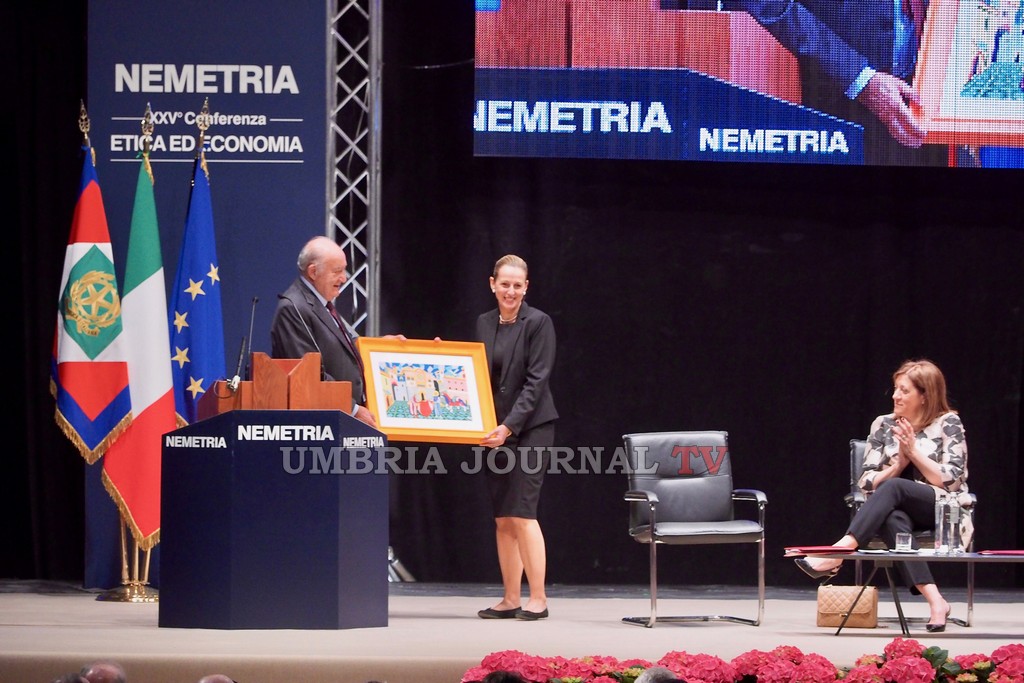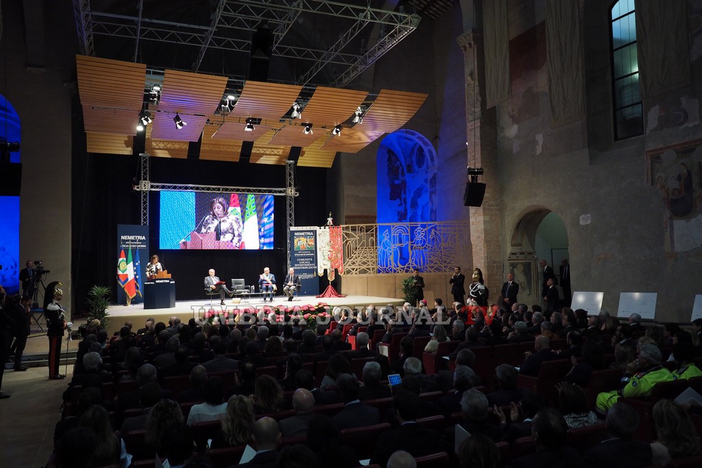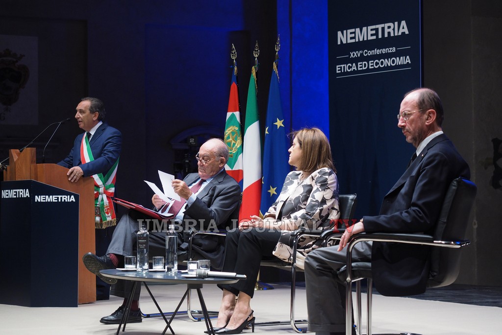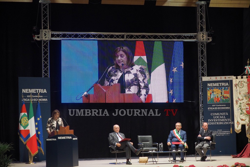La presidente della Regione dell’Umbria, Catiuscia Marini, nel suo intervento in apertura dei lavori, rivolgendosi al Presidente della Repubblica ha sottolineato il “grandissimo onore di averla qui oggi con noi, a Foligno ed in Umbria, in occasione del venticinquennale di ‘Etica ed Economia’. Considero un onore portare il saluto della Regione in questa importante giornata di studio e di farlo nel ricordo e nella memoria di chi ha voluto Nemetria e le giornate di ‘Etica ed Economia’: Leonello Radi. Una storia, un presente ed una visione che parla al domani con la forza dei luoghi in cui i valori etici e morali sono parte costitutiva del capitale sociale di questa città, Foligno, e di tutta l’Umbria”.