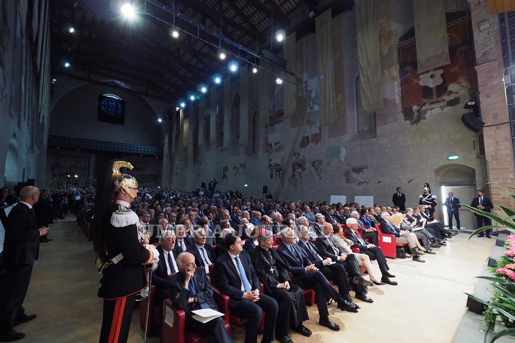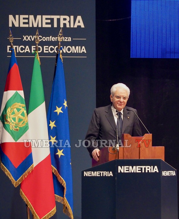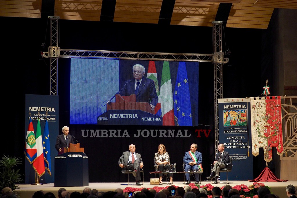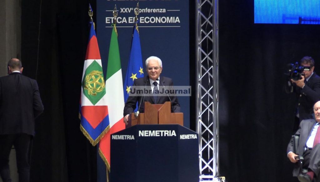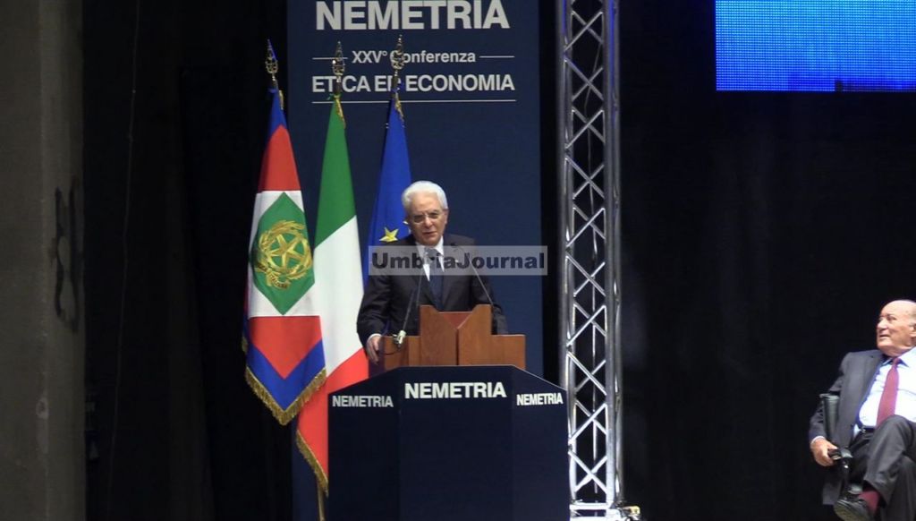 FOLIGNO – “Oggi viviamo un doppio appuntamento, i trenta anni di Nemetria ed i venticinque di Etica ed Economia. Collegare Etica ed Economia alle comunità locali è stata una grande intuizione di Leonello Radi.” Lo ha dichiarato, questa mattina, il Presidente della Repubblica, Sergio Mattarella, intervenendo alla venticinquesima edizione di Nemetria, all’Auditorium San Domenico di Foligno, una visita istituzionale che resterà nella storia della città e dell’Umbria intera.