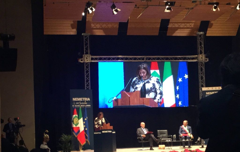 “Il rapporto tra Etica ed Economia non si può esaurire in semplici regole da rispettare – ha rilevato il Capo dello Stato dal palco di Nemetria – ma, se viene assunto come criterio connaturale per la vita delle comunità locali, ecco che il rispetto di questo collegamento è molto più efficace, proprio perché vissuto come spontaneo. Le comunità locali possono essere delle portatrici del vincolo tra l’Etica e l’Economia.”