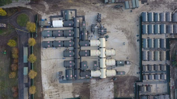 La struttura campale schierata, composta da oltre 40 moduli sanitari tra tende, containers e dispositivi sanitari specialistici, ha occupato un’area di circa 10.000 metri quadrati e ha visto impegnati oltre 150 militari provenienti da Roma, Bellinzago Novarese, Budrio (BO), Persano, Bari e Torino. Per rendere verosimile l’esercitazione, un team apposito ha organizzato e simulato una serie di attivazioni e situazioni di emergenza al fine di mettere alla prova militari, medici e operatori della Protezione Civile sul posto, utilizzando anche alcuni figuranti.