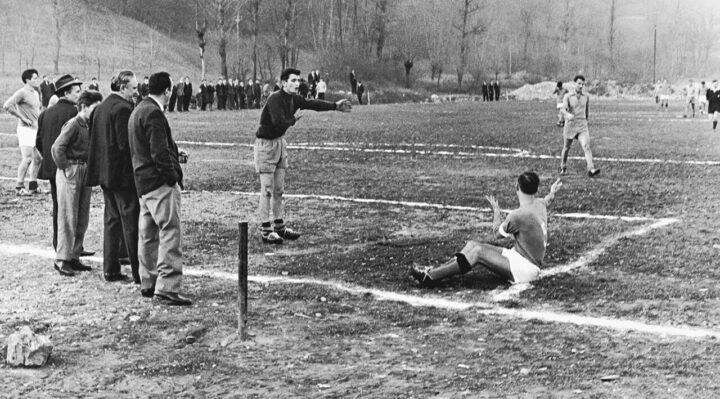 [su_panel background=”#ecb2b3″ color=”#070606″ border=”3px solid #f66a1b” shadow=”6px 7px 6px #e2dfe9″ radius=”7″ target=”blank”]È lo stesso Sindaco di Trevi Bernardino Sperandio a sottolineare come “la scelta di Villa Fabri non è casuale per questa mostra dedicata ai giochi, già alla fine del Cinquecento Girolamo Fabri decise di rappresentare sulla volta dell’atrio, accanto alle allegorie delle stagioni e alla inquietante figura di Cronos, quattordici diversi giochi di bambini, una rappresentazione assai rara che testimonia l’importanza del gioco nel nostro tempo che trascorre”.[/su_panel]Serve poco, anche solo un pallone, una ruota, una botte, una corda, delle carte, oppure una tombola e, con un po’ di fantasia parte la magia del gioco il quale “… cancella le distanze, aggira le differenze linguistiche, apre nuovi scenari di incontro. Che Pepi Merisio ne abbia voluto fare un filone di ricerca, ordinando questa mostra con gli scatti saltuari e improvvisi, è la dimostrazione di un attento vaglio antropologico, quello che negli anni lo ha condotto a raccontare i territori e le loro genti.” Così Flavio Arensi, e gli scatti di Merisio colgono la dimensione senza tempo dell’aspetto ludico nelle diverse situazioni della vita quotidiana. Come sottolinea il curatore, il metodo di Merisio è quello di concedere molto spazio alla propedeutica, allo studio delle situazioni, per poi giungere preparato a scattare la fotografia. Non pensava mentre premeva il pulsante, ma aveva molto pensato prima. Pensare, per Merisio, significa approfondire, caricarsi di stimoli per poter anticipare ciò che sta accadendo. Proprio come nel riferire di una partita di calcio o di una battaglia immaginifica fra eroi dai pantaloni corti, l’interesse per gli altri, per i loro movimenti o per la loro personalità, conduce il fotografo a inserirsi perfettamente nell’azione, cogliendo il momento più simbolico. L’opera di Merisio ha la grande fortuna di cercare il tempo emblematico, quello in cui qualcosa succede perché è il momento di succedere.