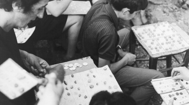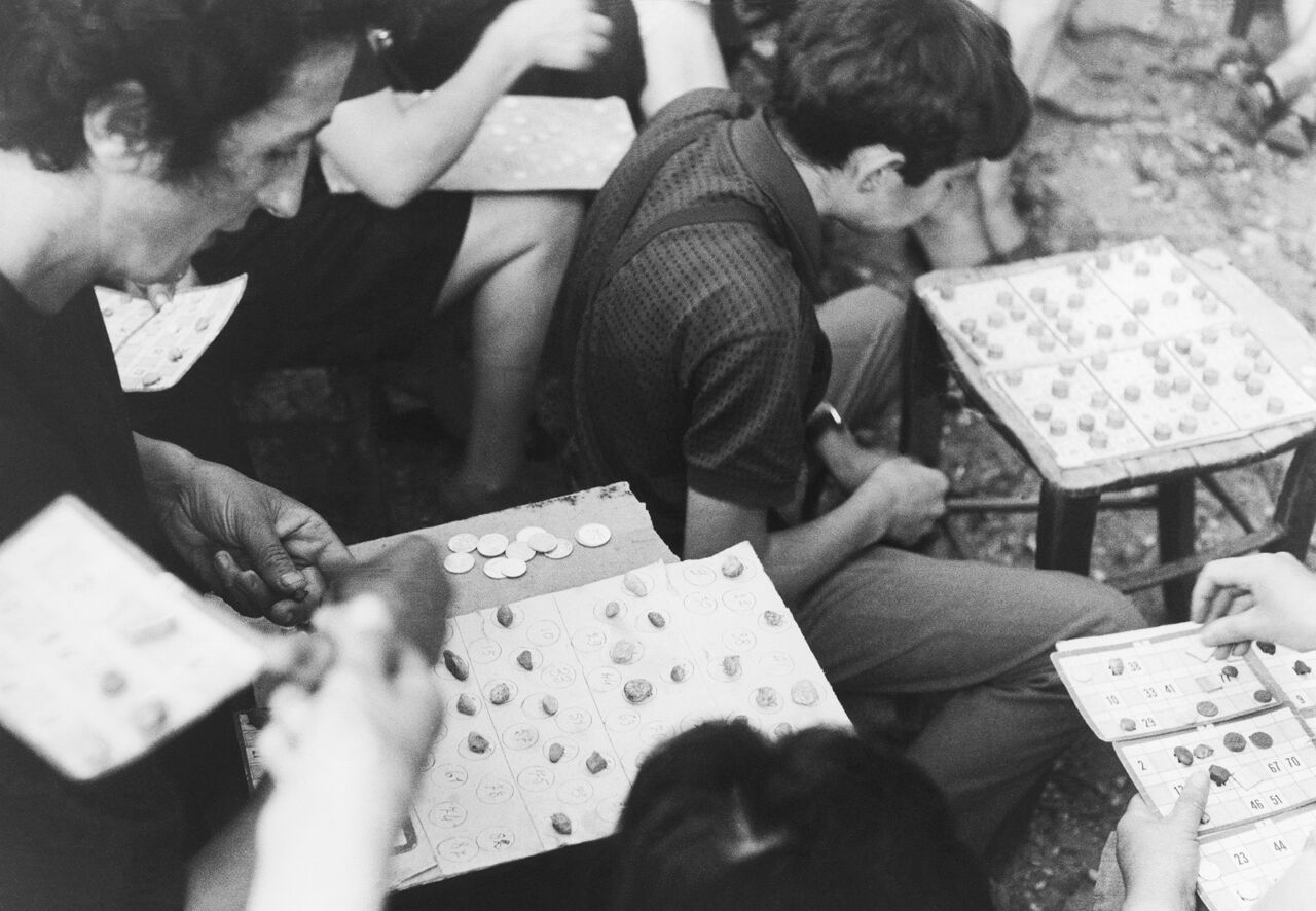 Attraverso la mostra “Pepi Merisio. Gioco!” viene raccontato un pezzo di storia reale della nostra Italia proprio perché Merisio, figura un po’ defilata nel panorama dei grandi fotografi italiani, è stato l’unico che ha lavorato fotografando quasi esclusivamente l’intero territorio italiano. Il gioco delle carte, quello del pallone, le corse per strada: come racconta Merisio in un’intervista, “credo che in tante immagini troviamo un’emozione. Ci commuoviamo davanti a quei volti, quegli occhi, quelle mani di persone che magari non ci sono più”. Gli scatti del famoso fotografo ospitati a Villa Fabri raccontano il fascino degli svaghi di adulti e bambini, documentando allo stesso tempo l’Italia di ogni giorno dagli anni del boom economico agli anni Ottanta. Sono scatti che, con delicatezza e poesia, mostrano allo spettatore giochi sulla neve, sulla spiaggia o su di un lago ghiacciato, sfide a bocce, salti della corda, carnevali gioiosi, partite a basket di seminaristi festanti, tombole e bimbi felici saltellanti in piazza perché, come afferma Merisio, “in fotografia, decisivo non è l’attimo, ma lo sguardo di chi sa cogliere l’istante irripetibile di un momento, il dettaglio di ciò che appare. È sempre il fotografo che decide quando è il momento decisivo”.